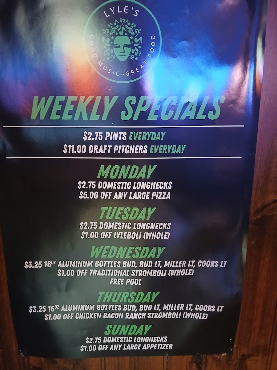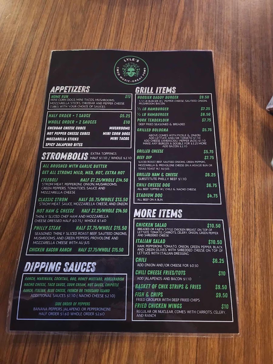 The menu pairs well with the venue’s friendly service and familiar setting, supporting a place where locals and visitors alike feel comfortable spending the night. Whether it’s a quick bite before the music starts or a casual meal over drinks, the offerings at Lyle’s help create steady, enjoyable moments throughout the evening.